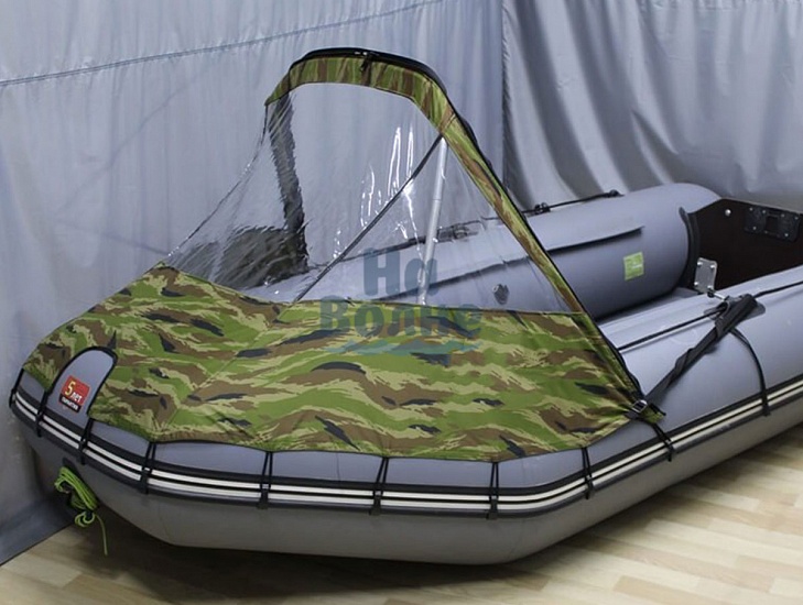 Легкость трансформации: возможность быстро отстегнуть достройку и использовать только носовой тент. Носовой тент также можно использовать, как отдельно от всей конструкции, так и в сочетании с крышей, подняв остальные части тента.